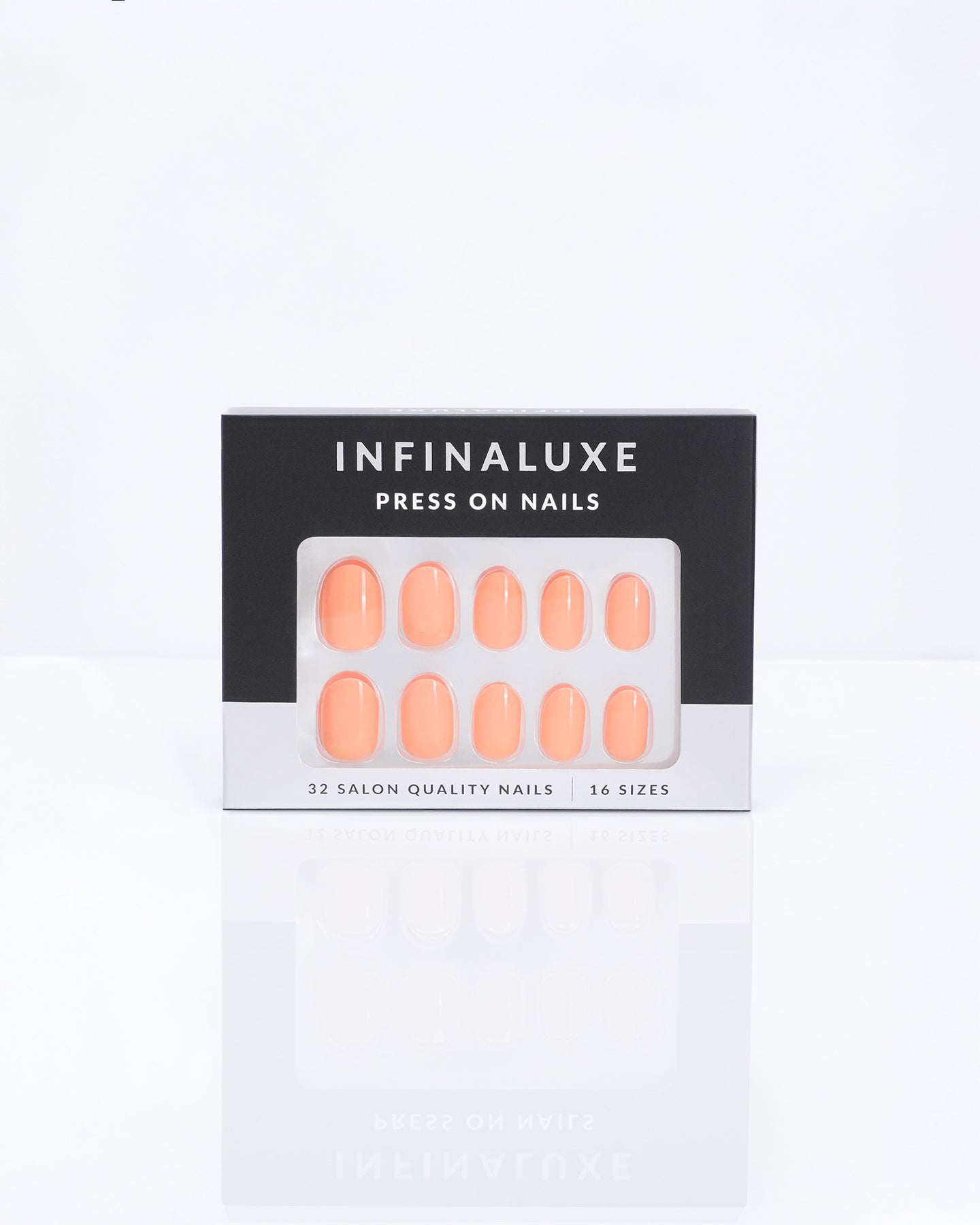 Infinaluxe Press-On Nails are designed for quick, mess-free application and long-lasting wear. Each set features salon-quality designs with a polished, professional look that lasts for up to 3 weeks.