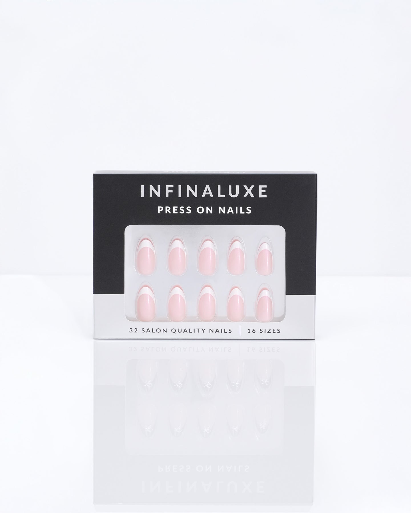 Infinaluxe Press-On Nails are designed for quick, mess-free application and long-lasting wear. Each set features salon-quality designs with a polished, professional look that lasts for up to 3 weeks.