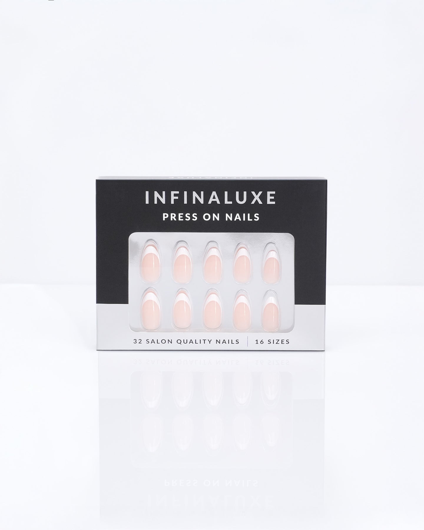 Infinaluxe Press-On Nails are designed for quick, mess-free application and long-lasting wear. Each set features salon-quality designs with a polished, professional look that lasts for up to 3 weeks.