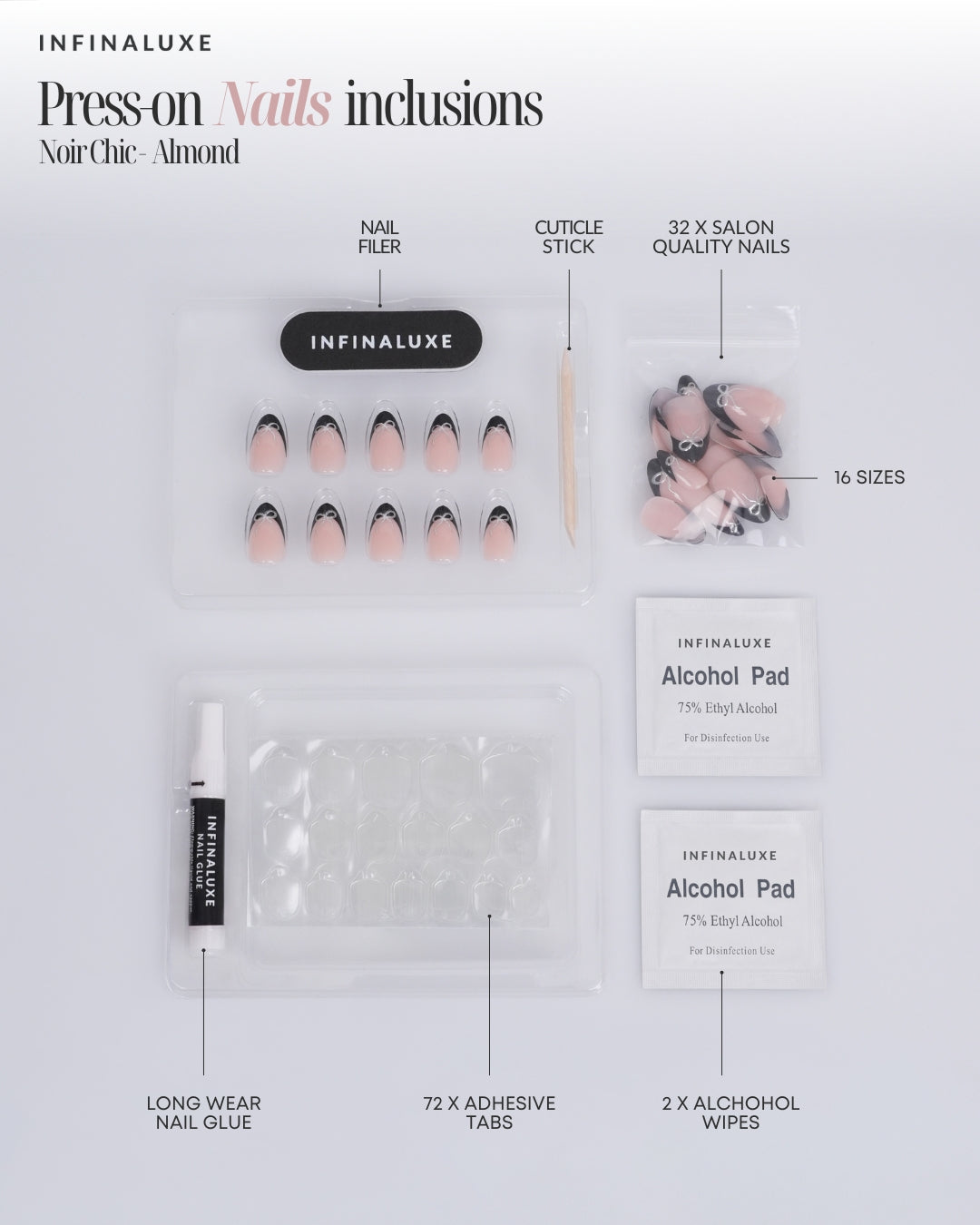 Infinaluxe Press-On Nails - Noir Chic - Almond