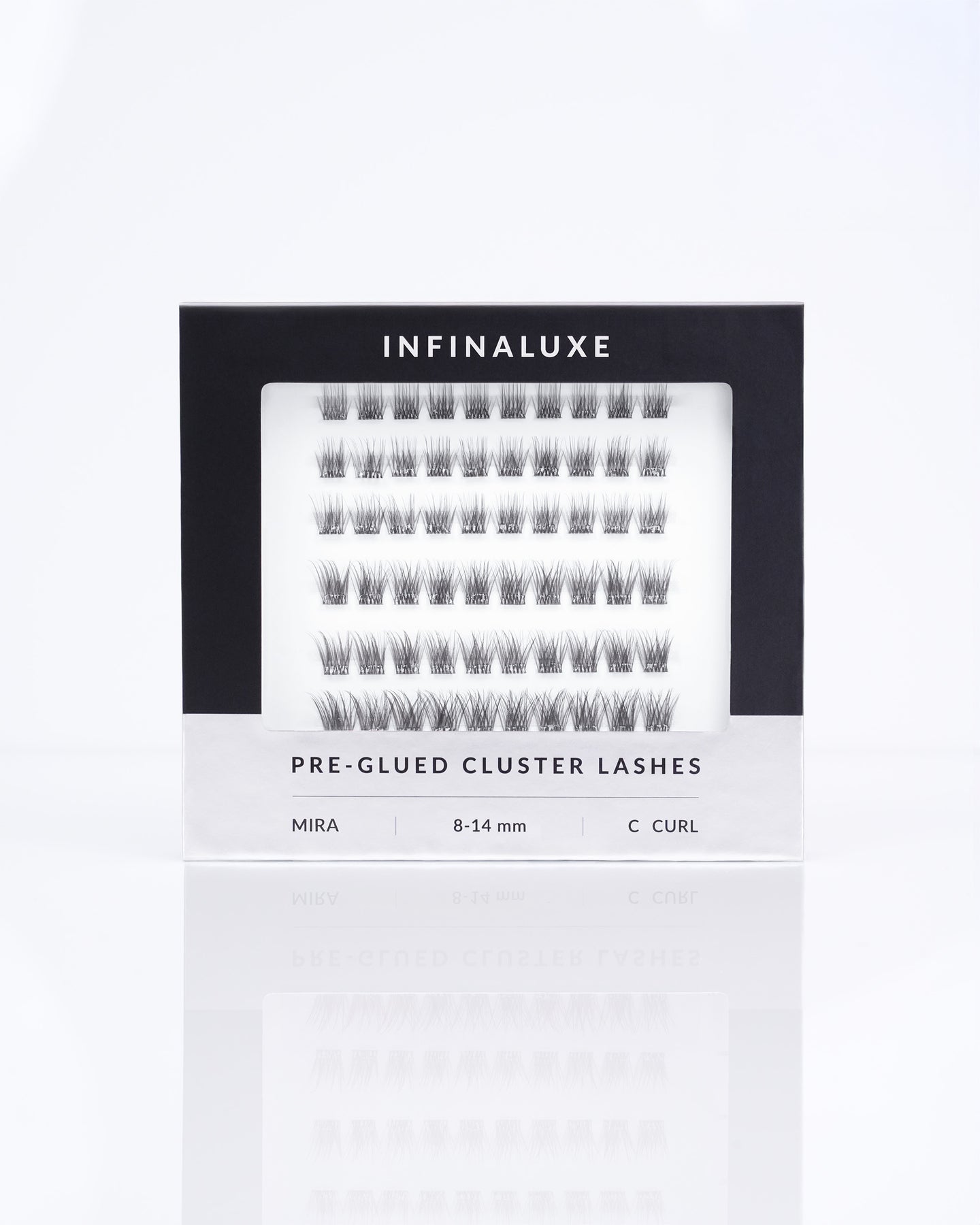 Introducing the next generation of effortless lashes. Each Infinaluxe Pre-Glued Lash is handcrafted with precision using ultra-soft, premium fibres and features a ready-to-wear adhesive band for instant application, no glue required.